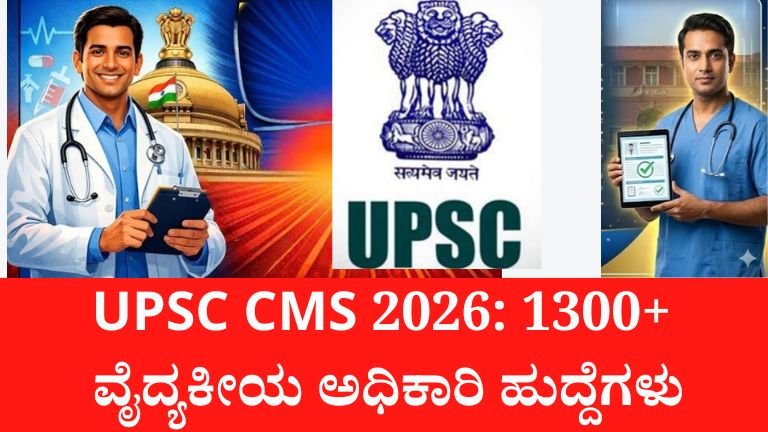UPSC CMS 2026 – ಸಂಪೂರ್ಣ ಮಾಹಿತಿ ಭಾರತದಲ್ಲಿ ಸರ್ಕಾರಿ ಉದ್ಯೋಗಗಳಿಗೆ ಇರುವ ಬೇಡಿಕೆ ದಿನೇ ದಿನೇ ಹೆಚ್ಚುತ್ತಿದೆ. ಅದರಲ್ಲೂ ವೈದ್ಯಕೀಯ ಕ್ಷೇತ್ರದಲ್ಲಿ ಸರ್ಕಾರಿ ಹುದ್ದೆಗಳು ಅತ್ಯಂತ …