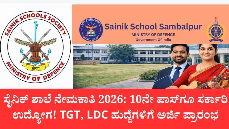 ಸೈನಿಕ್ ಶಾಲೆ ನೇಮಕಾತಿ 2026: 10ನೇ ಪಾಸ್ಗೂ ಸರ್ಕಾರಿ ಉದ್ಯೋಗ! TGT, LDC ಹುದ್ದೆಗಳಿಗೆ ಅರ್ಜಿ ಪ್ರಾರಂಭ