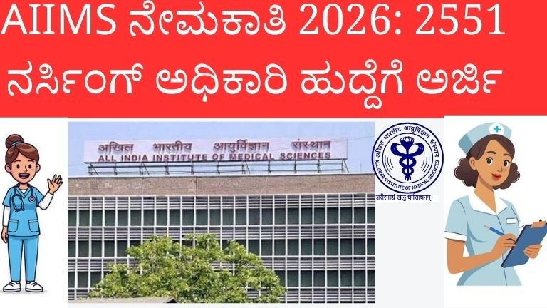 AIIMS ನೇಮಕಾತಿ 2026: 2551 ನರ್ಸಿಂಗ್ ಅಧಿಕಾರಿ ಹುದ್ದೆಗಳಿಗೆ ಅರ್ಜಿ ಆಹ್ವಾನ ಭಾರತದಲ್ಲಿ ವೈದ್ಯಕೀಯ ಕ್ಷೇತ್ರದಲ್ಲಿ ಸರ್ಕಾರಿ ಉದ್ಯೋಗ ಪಡೆಯಲು ಬಯಸುವ ಅಭ್ಯರ್ಥಿಗಳಿಗೆ ಮತ್ತೊಂದು ದೊಡ್ಡ ಅವಕಾಶ …