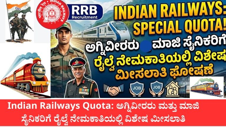 Indian Railways Quota 2026: ಅಗ್ನಿವೀರರು ಮತ್ತು ಮಾಜಿ ಸೈನಿಕರಿಗೆ ರೈಲ್ವೆ ನೇಮಕಾತಿಯಲ್ಲಿ ವಿಶೇಷ ಮೀಸಲಾತಿ – 5000ಕ್ಕೂ ಹೆಚ್ಚು ಹುದ್ದೆಗಳ ಅವಕಾಶ